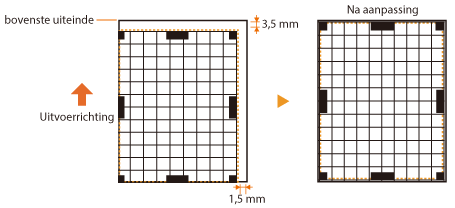 In het volgende voorbeeld, omdat het nodig is om de afdrukpositie 3,5 mm omhoog en 1,5 mm naar rechts te verschuiven, specificeert u -3,5 mm in verticale richting en +1,5 mm in horizontale richting.