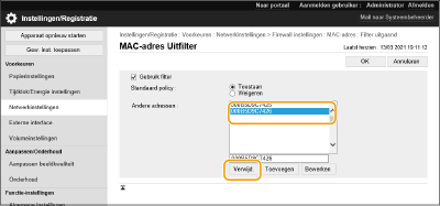 Selecteer een MAC-adres en klik op [Verwijderen].