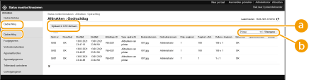U kunt de Remote UI (UI op afstand) gebruiken om de status te controleren van documenten in de wachtrij te controleren, evenals van logboeken voor documenten die al zijn verwerkt. U kunt u ook de status van de machine controleren, zoals foutgegevens en de resterende hoeveelheid verbruiksmaterialen.