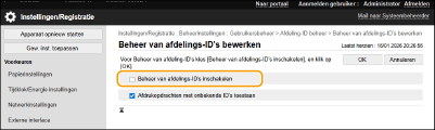 Selecteer [Beheer van afdelings-ID's inschakelen].