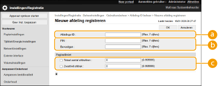 Voor informatie over het aantal afdelings-ID's dat u kunt registreren, raadpleegt u Beheerfuncties. |