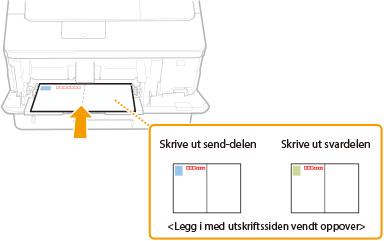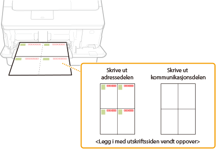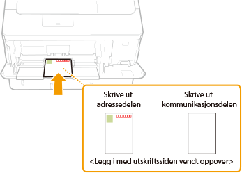 Før du legger i postkort, må du forberede dem ved å for eksempel glatte ut eventuelle krøller på dem. Pass også på at postkortene legges inn i riktig retning og med riktig side opp. Vær oppmerksom på at konvolutter ikke legges i papirskuffen.