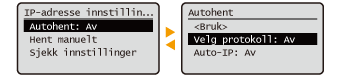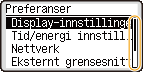 Du kan endre ulike skjermrelaterte innstillinger, slik som visningsspråket: <Display-innstillinger> Du kan endre skjermbildet som vises automatisk når maskinen ikke er i bruk i en angitt tidsperiode: <Funksjon etter auto nullstilling> Du kan endre ulike tilgangsrelaterte innstillinger, slik som bla-hastigheten: <Tilgjengelighet> |