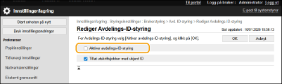 Velg [Aktiver avdelings-ID-styring].