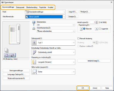 Angi utskriftsinnstillingene etter behov, og klikk på [OK].