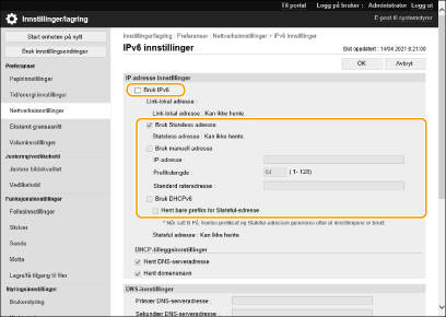 Velg [Bruk IPv6], og konfigurer de nødvendige innstillingene.