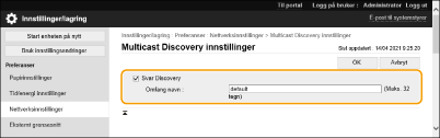 [Multicast Discovery innstillinger].