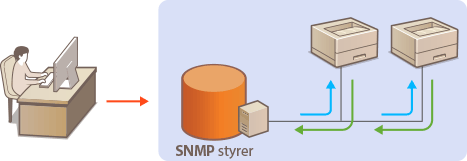 Med SNMP kan skriverstyringsinformasjonen, som skriverprotokoller og skriverporter, overvåkes og hentes regelmessig fra en datamaskin i nettverket.