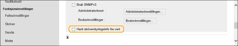 Velg avmerkingsboksen for å aktivere overvåking av skriverens styringsinformasjon for maskinen via SNMP. Hvis du vil deaktivere overvåking av skriverstyringsinformasjonen, fjerner du avmerkingen i boksen.