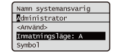 Tryck på eller välj <Symbol> och tryck på när typen av text som skrivs in är <A> eller <a> för att visa inskrivbara symboler på skärmen. Använd / / / för att välja den symbol du vill skriva in och tryck på . |