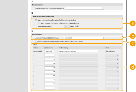 [Teckensträng] | Ange den teckensträng som har registrerats för attributet som angetts i [Användarattribut att bläddra bland:]. Ange gruppnamnet för att ange behörigheter baserat på den grupp som användaren tillhör. |