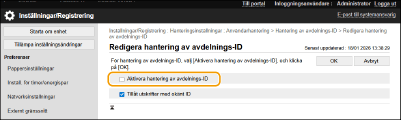 Välj [Aktivera hantering av avdelnings-ID].
