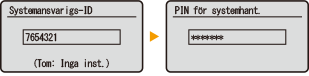 När Hantering av avdelnings-ID har aktiverats måste avdelnings-ID anges för användare innan de kan logga in. Systemansvarig-ID och Systemansvarig-PIN-kod ställs båda in på "7654321" som standard, men du bör ändra dem av säkerhetsskäl. Följ stegen nedan för att ändra dem.