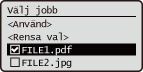 Automatisk utskrift vid inloggningOm funktionen för automatisk utskrift är aktiverad kan du ställa in maskinen så att dina egna lagrade dokument skrivs ut automatiskt när du loggar in på maskinen. Skriv automatiskt ut lagrade dokument när du loggar in |