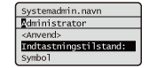 Tryk på , eller vælg <Symbol>, og tryk på , når den indtastede teksttype er <A> eller <a> for at få vist symboler, der kan indtastes på skærmen. Anvend / / / for at vælge det symbol, du ønsker at indtaste, og tryk på . |