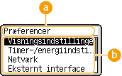 Når der ikke er nogen menu under det laveste niveau, vises indstillingsskærmen.