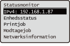 (Statusmonitor), vises skærmen <Statusmonitor>. På denne skærm kan du kontrollere print- og overførselsstatus samt den resterende toner- og papirmængde.