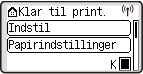Du kan ændre indstillinger uanset skærmvisningen, som f.eks. hvilket skærmbillede der vises umiddelbart efter maskinen tændes, og om meddelelsen om resterende papir og toner skal vises. <Visningsindstillinger> |