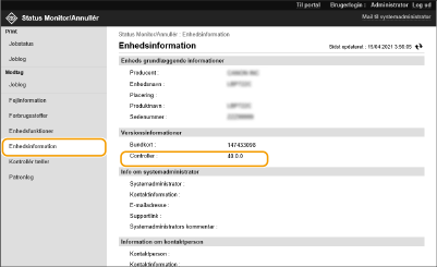 ![]() | Ny firmware frigives fra tid til anden for at tilføje nye funktioner eller løse problemer med eksisterende funktioner. Hvis en ny firmware er tilgængelig, skal du følge proceduren herunder for at opdatere den på maskinen. Administratorrettigheder er nødvendige for at opdatere firmwaren. |