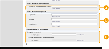 Indtast tegnstrengen, der er registreret i attributten, der er angivet i [Brugerattribut at gennemse:]. For at angive rettigheder baseret på den gruppe, brugeren tilhører, skal du indtaste gruppenavnet.