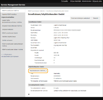 Valitse [MEAP Application Management] ja hallitse käyttöoikeutta napsauttamalla sovellusta.