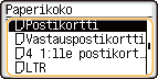 1 | Valitse postikorttien tyyppi. | Jos haluat tulostaa postikortin molemmille puolille, tulosta ensin yhdelle puolelle ja sitten toiselle puolelle. Ennen postikorttien lataamista tasoita korttien mahdolliset käpristymät. |