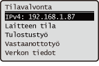 Näytä <Valikko>-ikkuna valitsemalla <Aseta>. Monet laitteen asetukset, kuten hallinta-asetukset, näyttöasetukset ja verkkoasetukset, määritetään valitsemalla ensin <Aseta>.