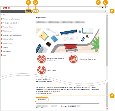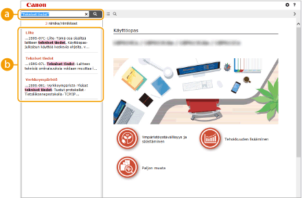 Näet napsauttamalla tietoja Käyttöopas -oppaan lukemisesta, hakujen suorittamisesta sekä muita tietoja.