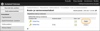 Napsauta TLS-salauksessa käytettävän avaimen ja varmenteen kohtaa [Käytä].