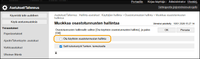 Valitse [Ota käyttöön osastotunnusten hallinta].