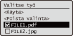 Valitse asiakirjat <Valitse työ> -näytöstä ja paina .