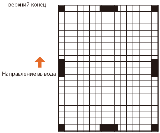 Передний край выводимого листа бумаги — это верхний край пробного отпечатка. Забирая лист бумаги, запомните, где верхний край.