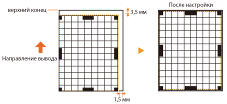В следующем примере, поскольку необходимо сместить положение печати на 3,5 мм вверх и на 1,5 мм вправо, укажите -3,5 мм по вертикали и +1,5 мм по горизонтали.
