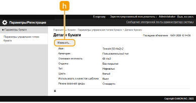 [Имя]Отображается [Детали бумаги] при щелчке по типу бумаги, отображаемому в [Имя]. Выбрав пользовательский тип бумаги, его можно отредактировать.