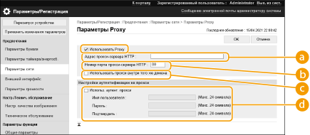 Установите флажок [Использовать Proxy] и укажите требуемые параметры.