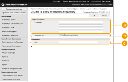 Введите ссылку на информацию о поддержке аппарата, чтобы отобразить на странице портала Remote UI (Удаленный ИП).