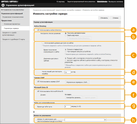 ![]() | Чтобы указать в качестве дополнительного устройства аутентификации сервер Active Directory, Microsoft Entra ID или LDAP, необходимо зарегистрировать информацию о сервере, который используется для аутентификации. Проверьте подключение к серверу. |