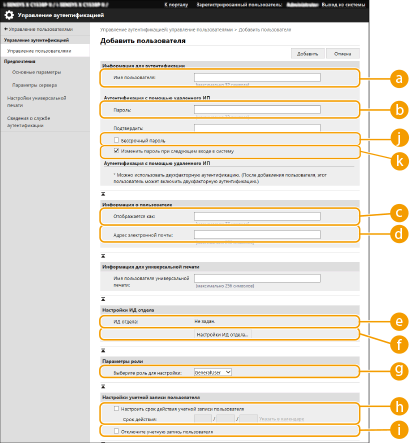 uid | Да | 1–32 символа | Управляющие символы, однобайтные пробелы и следующие символы: \ / : * ? | < > [ ] ; , = + @ " | ![]() | Необходимо ввести при импорте. «@» может быть доступно в зависимости от настройки. Настройка способов входа пользователей в систему и устройств аутентификации |