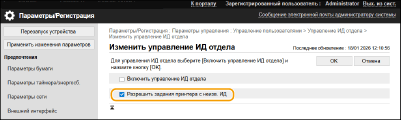 Установите этот флажок, чтобы принимать задания на печать от драйверов принтера, которые не поддерживают функцию «Управление ИД отдела».