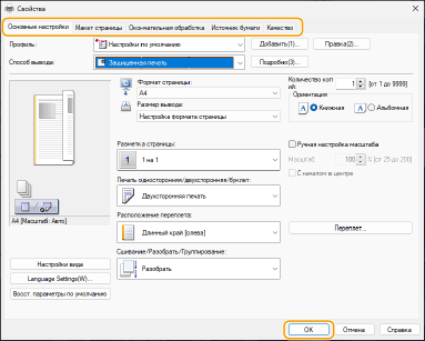Настройте параметры печати по своему усмотрению и нажмите [ОК].