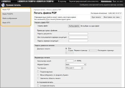 ![]() | С помощью Remote UI (Удаленный ИП) файлы, сохраненные на компьютере или в сети, можно печатать напрямую на аппарате без использования драйвера принтера. Для этого не нужно открывать файлы на компьютере. |
