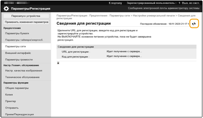 Нажмите ссылку URL, отображаемую в поле [URL для регистрации].