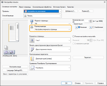 Приведите в соответствие параметр [Формат вывода] в драйвере принтера с форматом бумаги.