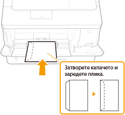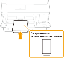 Заредете плика така, че краят с капачето да е насочен към лявата страна, както е показано на илюстрацията.