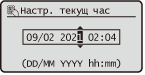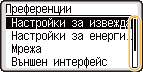 Можете да промените различни настройки, свързани с дисплея, като например езика на дисплея: <Настройки за извеждане> Можете да промените екрана, който се показва автоматично, когато машината остава в бездействие за определен период от време: <Функция след авт. нулиране> Можете да промените различни настройки, свързани с достъпността, като например скоростта на превъртане: <Достъпност> |