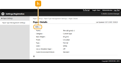 Щракнете върху [Paper Settings]  [Paper Type Management Settings].