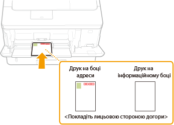 У цьому розділі описується процедура завантаження листівок у правильній орієнтації, а також дії, які слід виконати перед завантаженням листівок. Опис загальної процедури завантаження листівок у багатоцільовий лоток див. в розділі Основний спосіб завантаження паперу.
