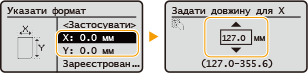 | Виберіть <X> або <Y>, щоб зазначити довжину кожної сторони за допомогою цифрових клавіш або клавіш  /  . |