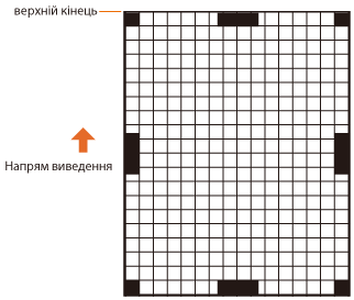 Передній край паперу, що виводиться, — це верхній край пробної роздруківки. Пам’ятайте, який край є верхнім, коли дістаєте папір.