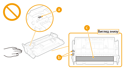 Не торкайтеся модуля пам’яті картриджа з тонером (), електричних контактів () або фотобарабана ().
